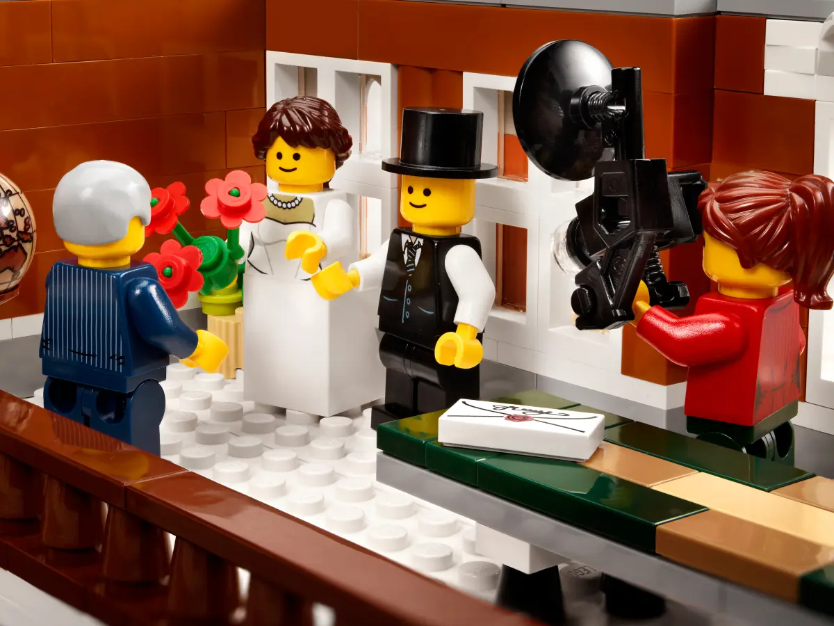 - Bij de set horen 8 minifiguren: burgemeester, secretaresse, bruid en bruidegom, journaliste, schoonmaker en 2 kinderen