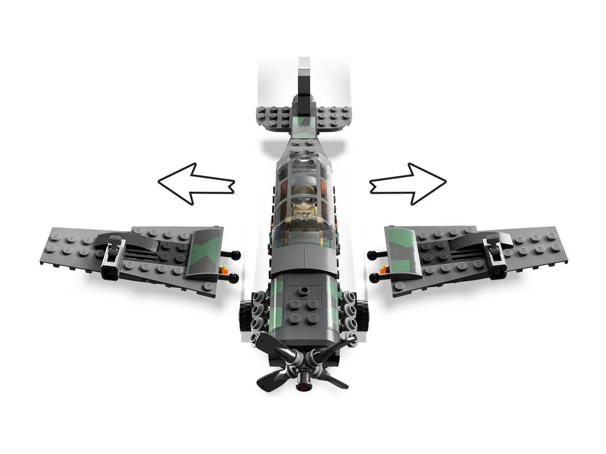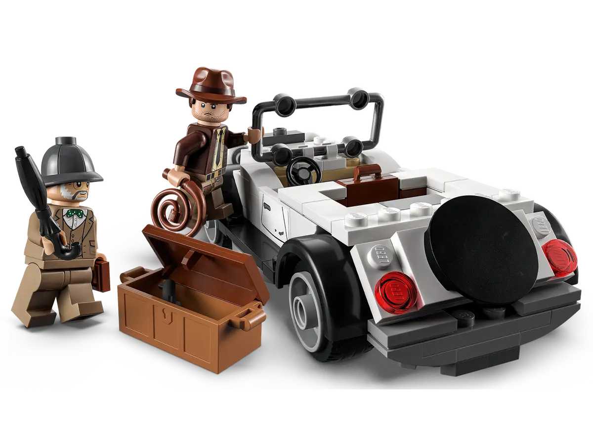 LEGO® Indiana Jones™ Fighter Plane Chase (77012) comes with everything kids aged 8+ need to enjoy hours of creative play. The playset features a brilliant fighter plane with a propeller, 2 stud shooters and removable wings, plus a supercool vintage convertible car with a chest in the back containing an umbrella and a pistol.