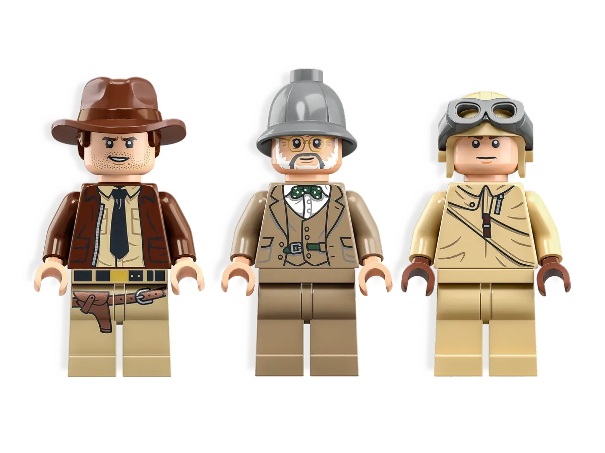The building set comes with 3 minifigures: Indiana Jones with his famous whip, his father Professor Henry Jones Sr.™ holding a diary, and a fighter pilot so kids can play out a famous chase scene from the Indiana Jones and the Last Crusade movie.