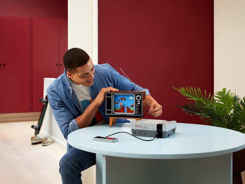 - Super Mario Bros.™ fans zullen de authentieke details van de NES-console in LEGO® stijl, waaronder een controller en een sleuf die open kan voor de bouwbare Game Pak met een realistische vergrendelingsfunctie, zeker kunnen waarderen.
