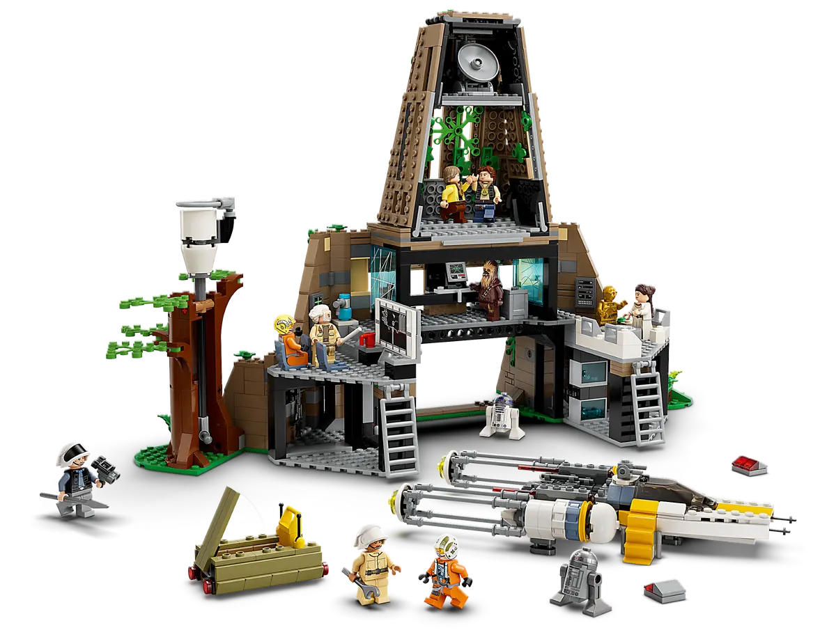 - Samen bouwen – deze modulaire Rebellenbasis op Yavin 4 is ca. 31 cm hoog, 49 cm breed en 20 cm diep en is ontworpen om samen met familie en vrienden te bouwen