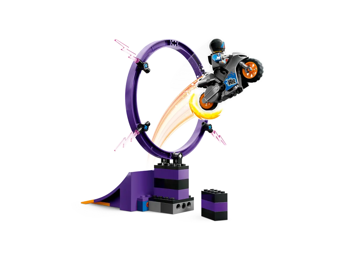 - Leuke LEGO® City Stuntz actie – kinderen lanceren de stuntmotor om een looping te maken, door een ring van vuur te springen en de top van de toren te bereiken